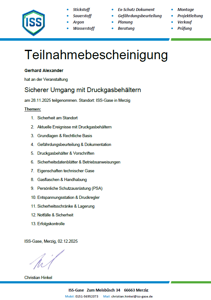 Sicherheitsunterweisungen nach ArbSchG, BetrSichV und GefStoffV Wir führen gesetzlich geforderte Sicherheitsunterweisungen für Ihre Mitarbeiter durch – z. B. im sicheren Umgang mit Arbeitsmitteln, Gefahrstoffen und Gasversorgungsanlagen. Hierbei kommen Inhalte und Beispiele zu folgenden Themen direkt aus Ihrem Betriebsalltag.